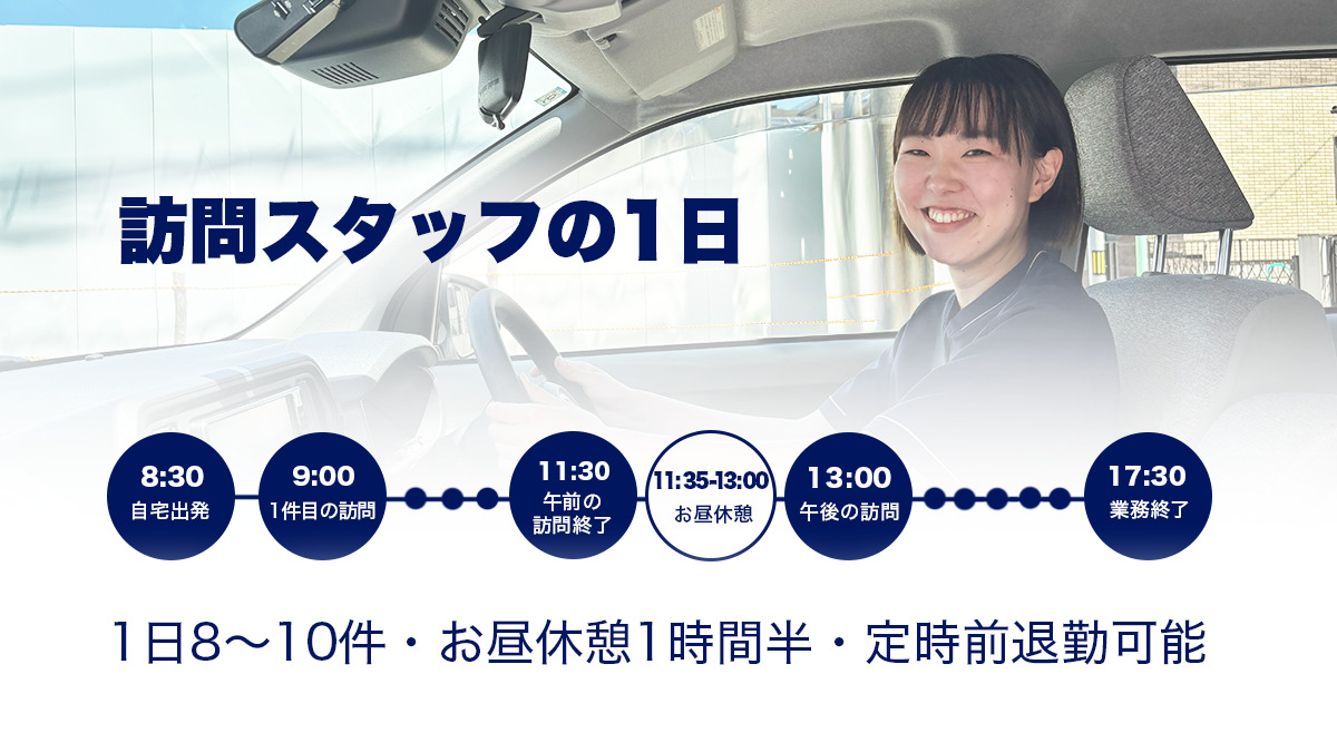 ◼︎ご自宅や介護施設に訪問し、鍼灸・機能訓練を行います。 ◼︎施術1回につき20~30分ほど、1日8~10件前後 ◼︎直行直帰可能 (訪問エリア 名古屋市全域+近郊地域) ◼︎独立開業に必要な知識、技術が学べます(詳しくはお問い合わせください) ※転勤なし ※業務範囲の変更なし