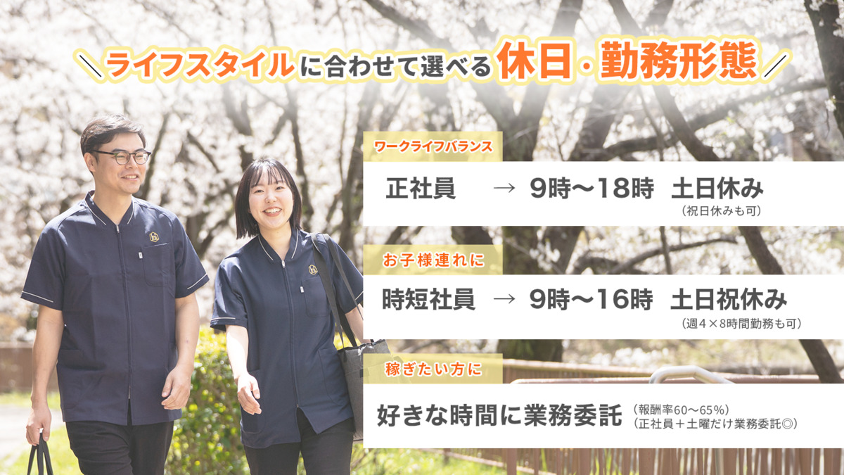 ◼︎9:00~18:00(平均勤務時間7.5時間) ◼︎60分休憩・残業なし