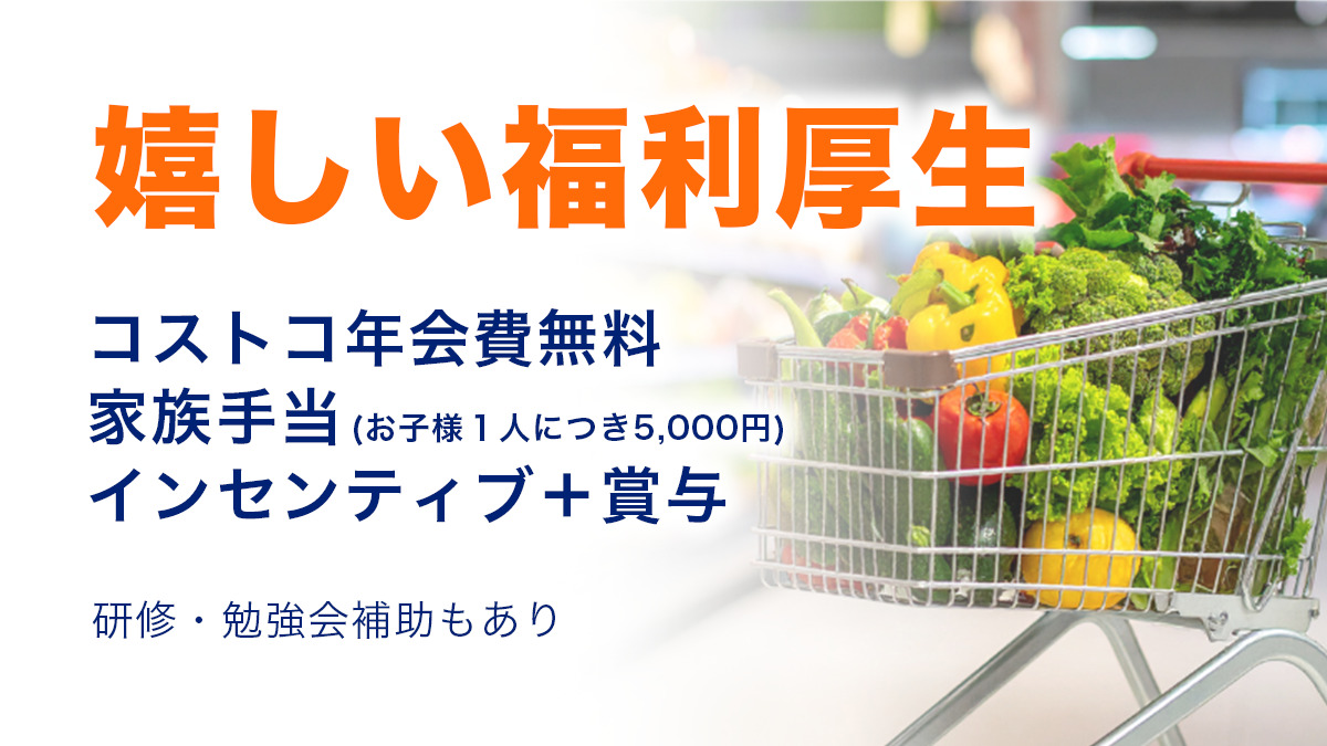 ▪️雇用保険、労災保険、健康保険、厚生年金 ▪️賠償保険 ▪️制服貸与 ▪️車通勤可 無料駐車場あり ▪️社用車あり(プライベートで使用可) ▪️コストコ会員 ▪️勉強会あり
