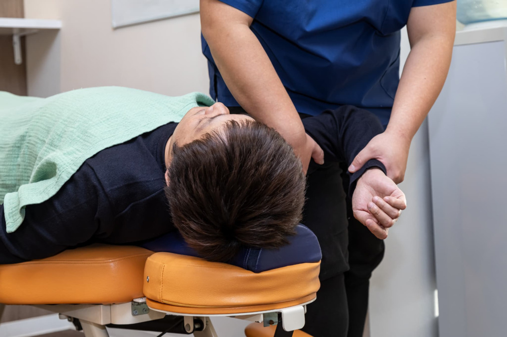 体のねじれ検査→原因説明→施術→自費提案まで一気通貫の体系があります。