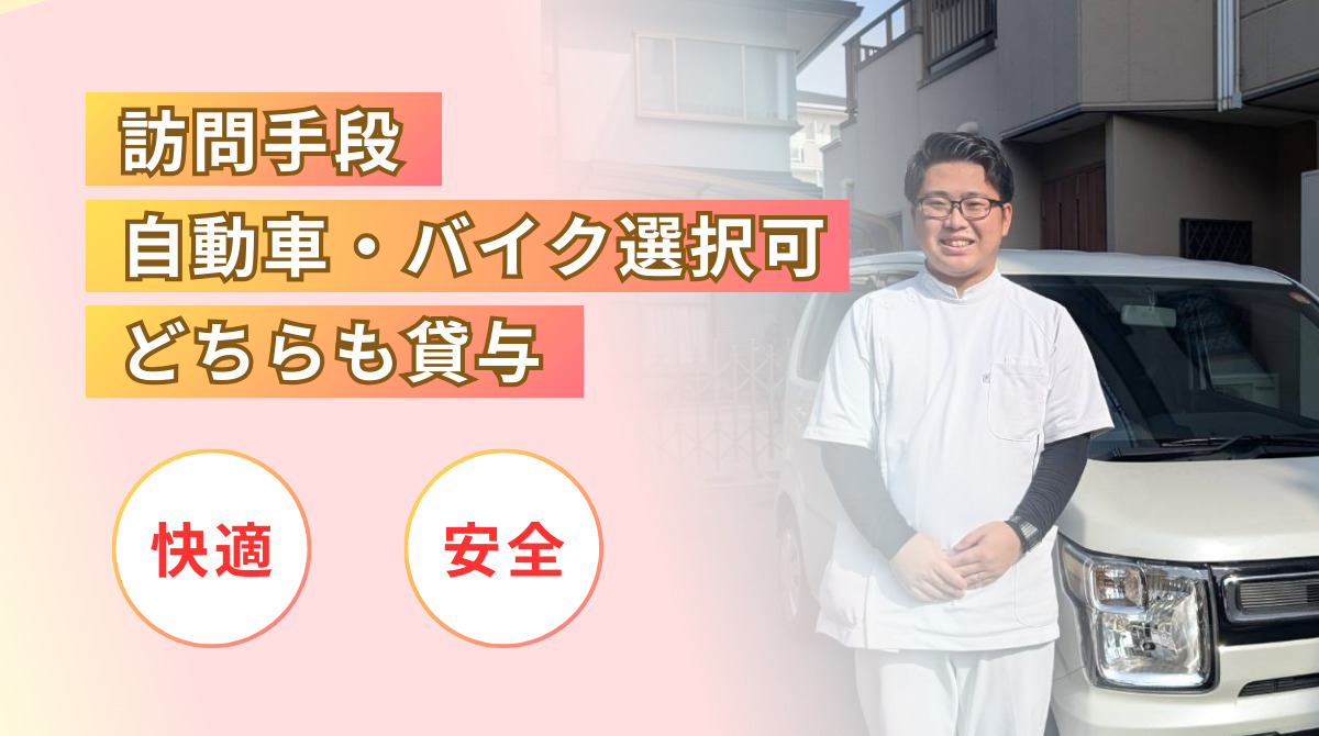 整骨院勤務出身の私からすると帰宅時間がすごく早くなりました!直行直帰できるのが特徴です! 1人でコツコツと施術を行うのでスタッフ間での人間関係にも困りません。施術の面では自宅にお伺いした際に「待ってたよ!」の一言を言って頂けるのがすごく幸せです。高齢者が劇的に症状改善したり酷くならないようにできるとても社会的意義のある仕事です!