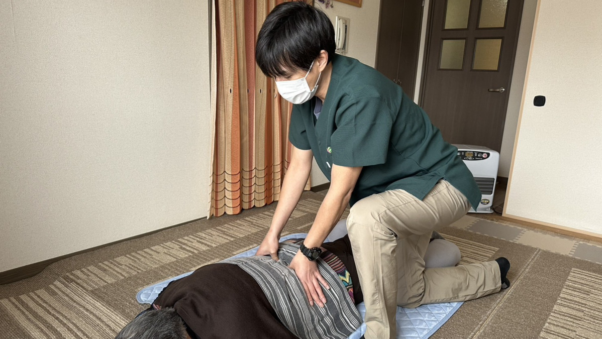 自宅に訪問して、治療しながら昔の話、日常の話、孫の話をしながら一人の患者様にじっくり治療をしていきます。