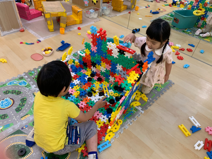 子どもたちの遊びを見守ります。自由遊びのほか、体操や空手、英語の教室を週に1回ずつ行なっています*