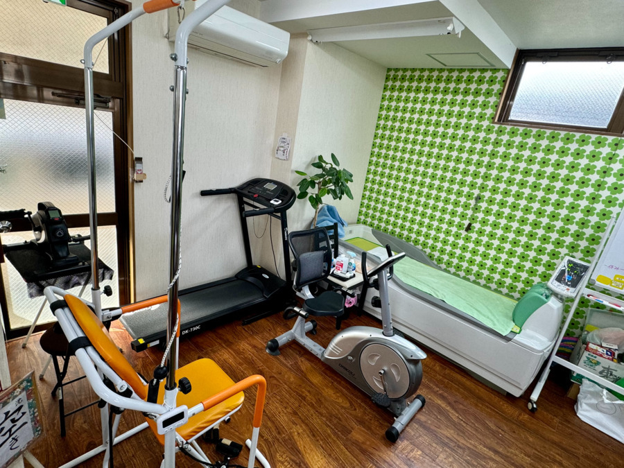 リハビリではマシンリハの他に、機能訓練士と個別で行う、運動指導・カラダのケアや、体質を向上させる治療器を当てたりしています。その他サービスでは、体操・脳トレ、介護士による製作や屋外歩行などがあります。