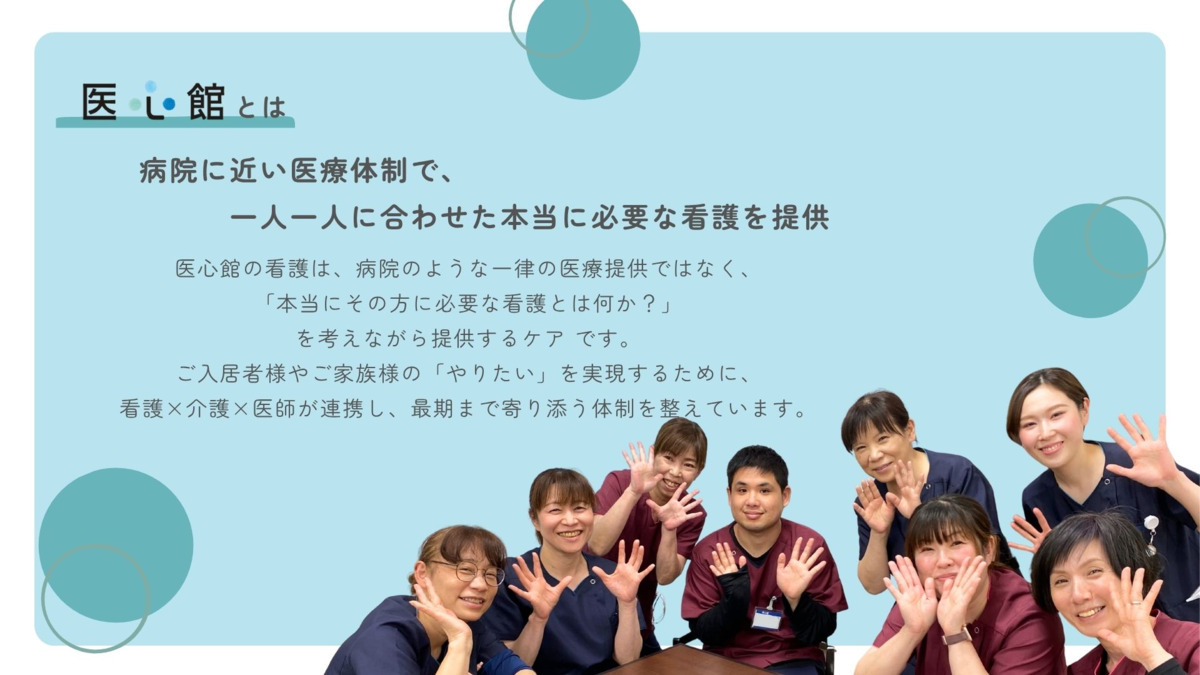 ▌こんな方におすすめ!  ̄ ̄ ̄ ̄ ̄ ̄ ̄ ̄ ̄ ̄ ̄ ̄ 💡 医心館では、病院では叶えられなかった「その人らしい看護」を実現できます。 ✔ 医心館の理念に共感し、 地域から真に必要とされる 在宅施設として育てていきたい方 ✔ 拠点の“社長”として経営(数字)や運営に 前向きに関わりたい方(※未経験OK) ✔ 職員一人ひとりの思いや働き方、 職業人としての成長に高い関心を持てる方 ✔ 入居者様に寄り添う「ひとりにはしない」 唯一無二の看護を提供したい方