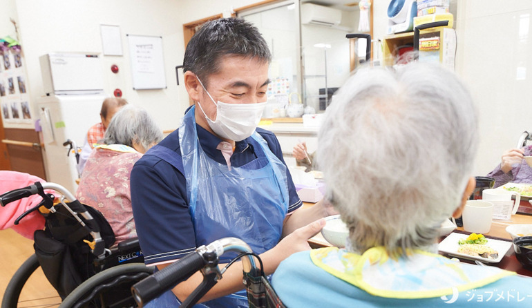 夜勤帯は、泊まりのお客様の見守りや夜間介助を行います。 並行して、日中や夜間の状況を記録する業務と、翌日の早番スタッフへの申し送り準備を行います。 ===== 今回ご紹介したのは、ある施設での1日の流れの例です。 勤務時間や業務の内容は施設によって異なる場合があるので、詳しくは応募後のメッセージでお問い合わせください♪