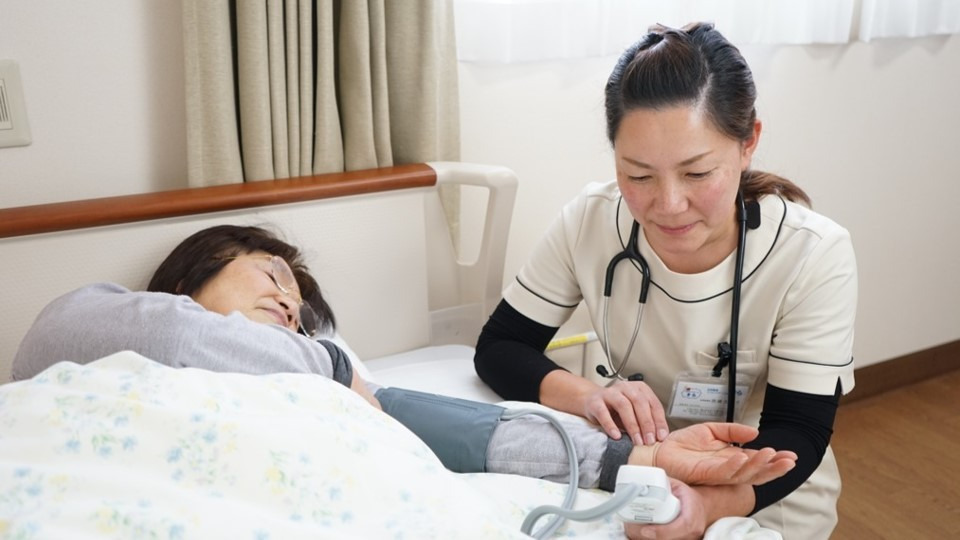 医療処置、健康管理などの医療的側面から、 入居者の方が安心して過ごせるようにサポートする仕事です。