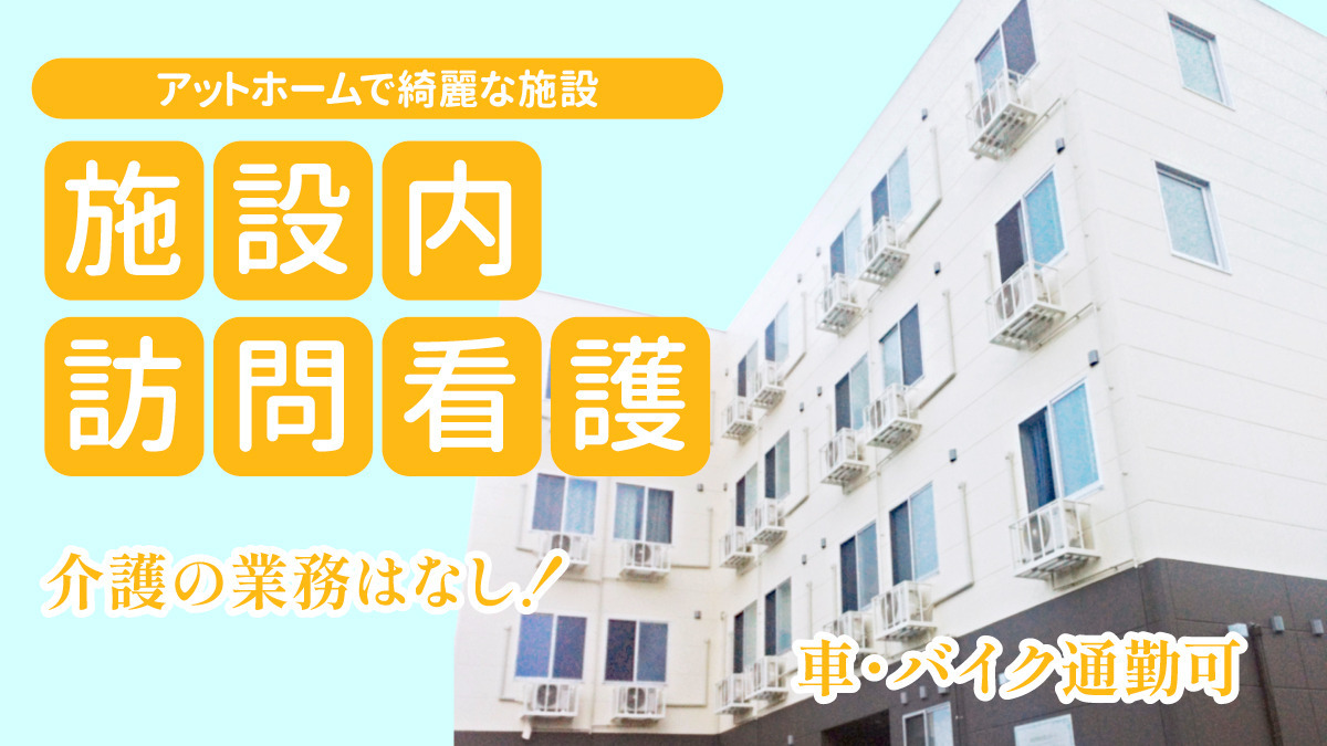 ■一般職 2025年6月OPENの高齢者施設内で施設内訪問看護業務をお任せします。 法人の他施設では20代~40代が活躍中の若手が活躍している環境です。 正看護師のみの雇用となります 具体的な業務は下記となります。 ・経管栄養 ・吸引 ・点滴管理 ・血糖値測定 ・インスリン注射 ・褥瘡処置 ・電子カルテ入力 ・看護日誌の記入など ※残業ほぼなし ※基本的に介護業務はありません。 ※お看取りやターミナルや末期の癌など医療行為の必要な方が多いです。 ※施設への訪問です。 ■リーダー職 2025年6月OPENの訪問看護の主任(リーダー)として勤務していただきます。 その後のキャリアとして管理者を目指すこともできます! 今後もどんどん施設展開を考えているのでその中心で活躍いただきたいと思っています。