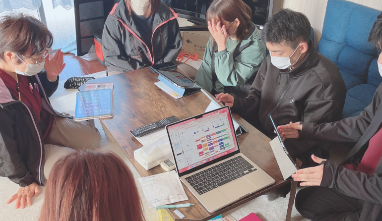夕方、事務所に戻って記録をまとめらスタッフ同士てま情報共有をして1日の業務が終了になります。