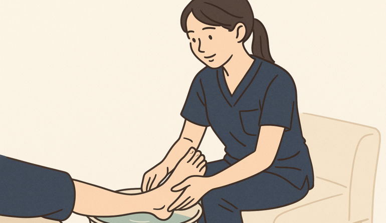 フットケアや創部の観察など、その日の状態に応じて必要なケアを行います。