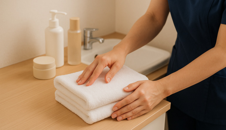 入浴介助・スキンケアを中心としたケア。急性期とは違い、生活リズムに沿ったサポートができます。