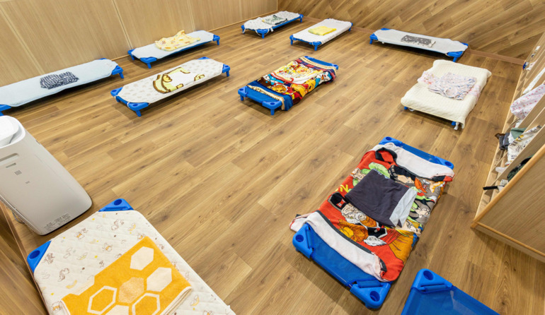 子どもたちは身体を休めて、午後の活動に備えます。 スタッフは子どもたちの安全を最優先にし、午睡チェックや、申し送り、連絡帳アプリの記入を メンバーで連携を取りながらおこないます。