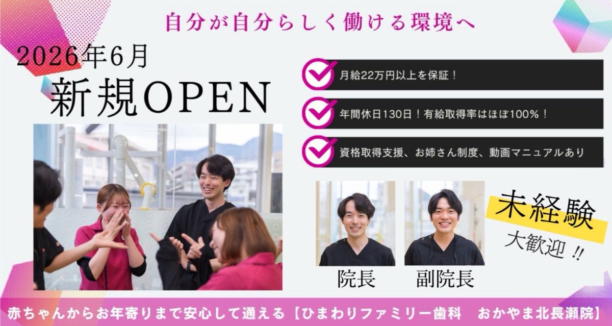 【新規OPEN】2026年6月岡山市北区北長瀬にオープン!「家族みんなが通える」新しい歯科医院のオープニングスタッフ募集!!