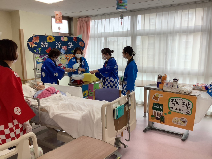- 病棟51床に対して、看護職員2名、看護助手2名配置の厚い人員体制