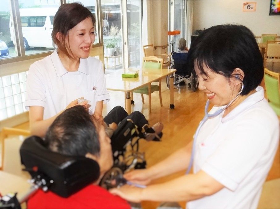 - 看護師が介護スタッフを支えながら、より良いサービスを提供しています。