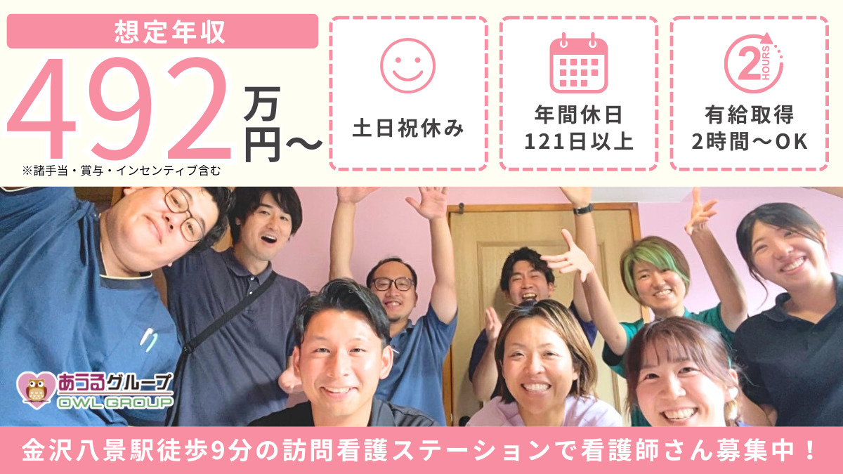 - スピード返信職場の環境訪問看護ステーション社会保険完備年間休日120日以上ボーナス・賞与あり交通費支給年齢不問