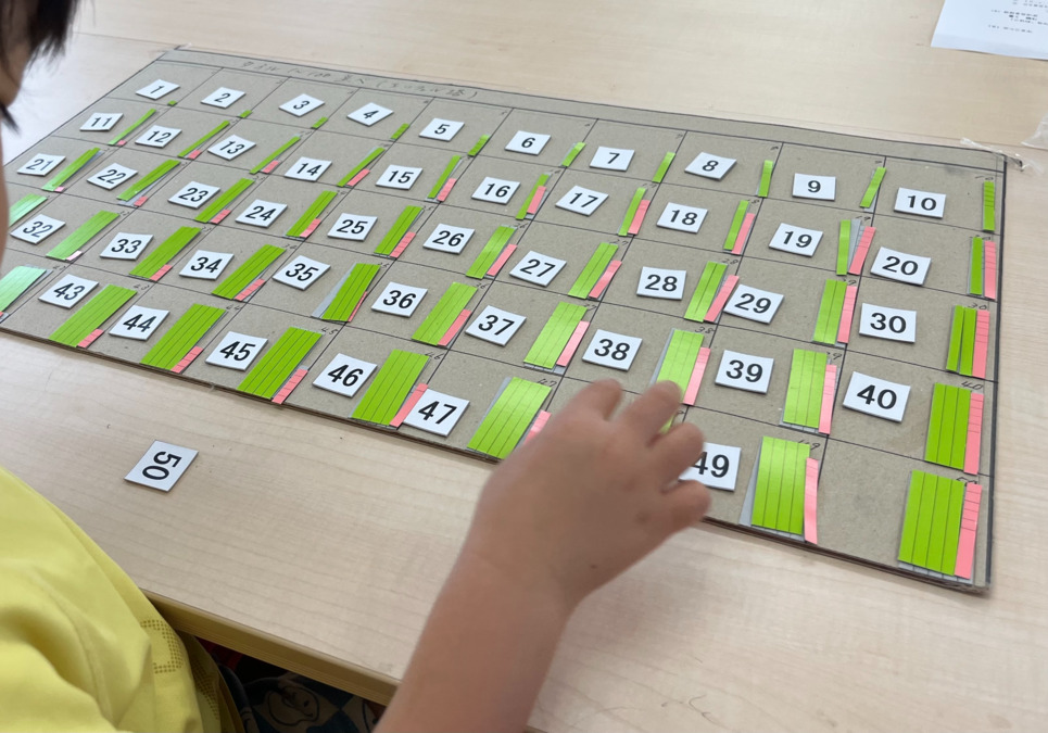 独自の教材をもって(タイル算)、言語がなくても理解できる算数指導、文字指導を行います。また、職業指導・家庭科技術としての、料理、クロスステッチ、ビーズ暖簾作りに取り組みます。また、定期的に子どもたちとご家族と山歩きを楽しんでいます。