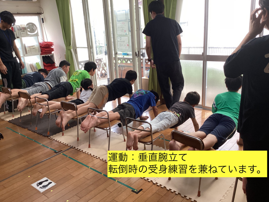 小学校低学年の児童はこの時間から活動に入ります。こどもたちの笑顔と真剣な課題や室内運動あそびなどのスケジュールに向かう姿に癒されます。