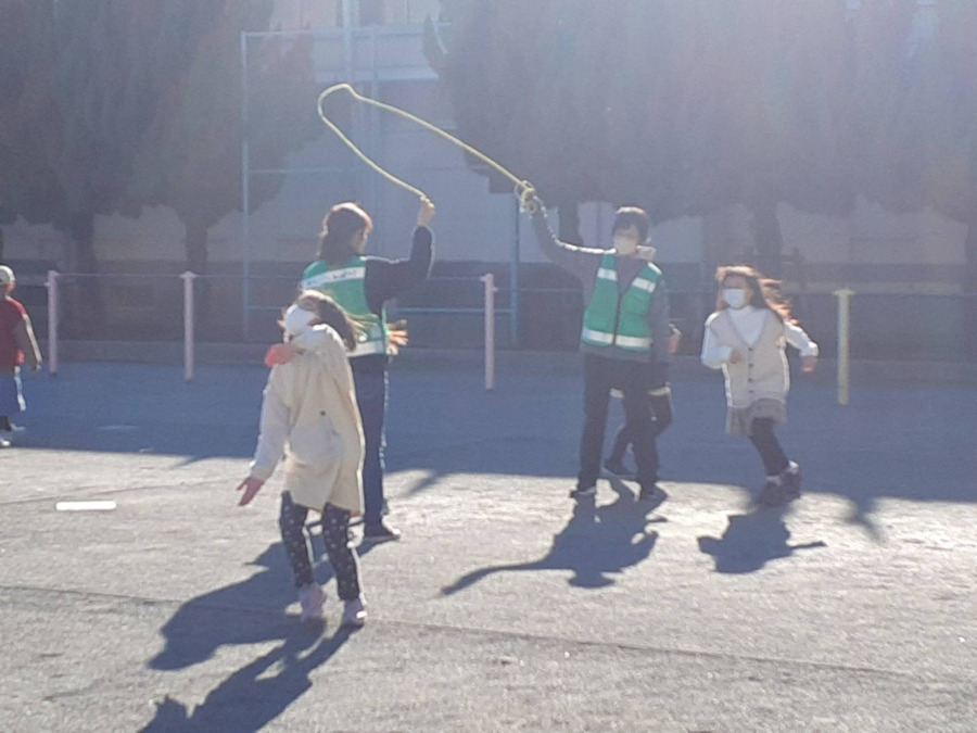 ・学校の校庭、近所の公園・・・遊び場所はさまざまです。 ・鬼ごっこ、なわとび、ドッチボールなど、思いっきり体を使って遊びます。