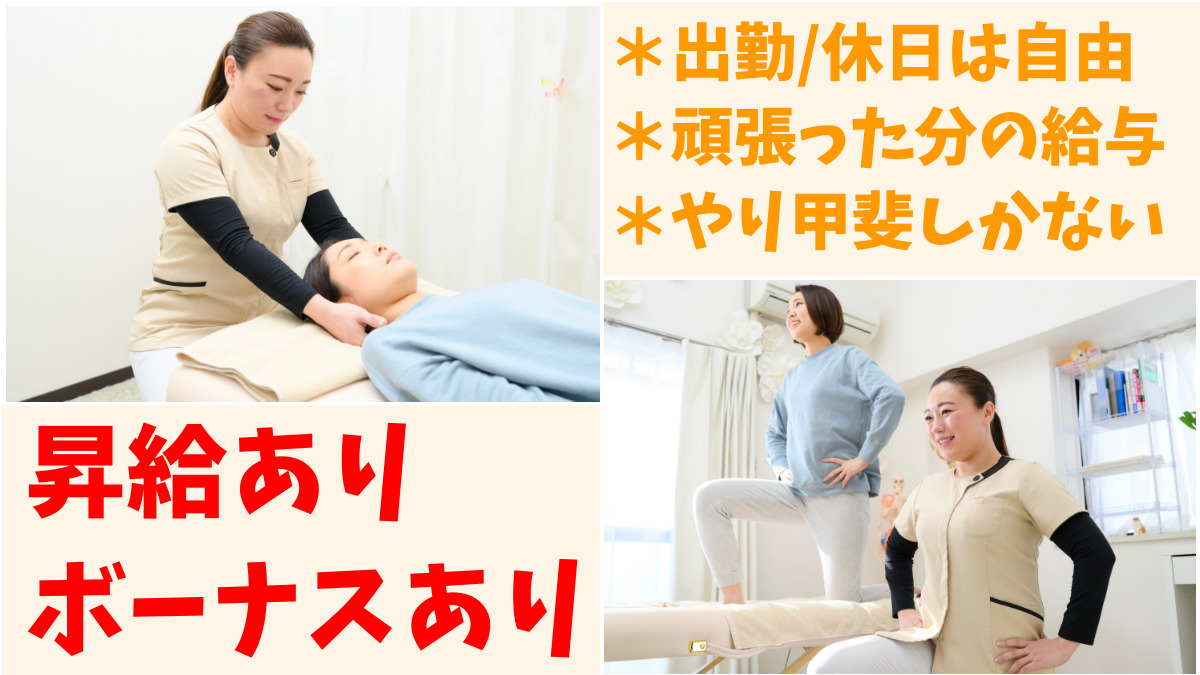 弊社では現状を変えたい女性セラピストを募集しています。 ・今の自分の実力に収入が見合っていない ・もっと活躍したい ・休みを自由に取りたい ・コミュニュケーションには自信がある ・スキルよりも接客に自信があ など、ある方は是非応募してください! 必ず現状よりも良い条件で働けると思います! もちろんデメリットもあります。 ・店舗を任せた序盤は頑張って働いてもらいます。 ・弊社が求める最低限のスキルと接客を習得できるまではキツイかもです。 弊社は正直言うと、 スキルよりもコミュニケーション能力を重視してます! 自信がある方は必ず応募をお願いします! あなたの仕事に対する満足度を高める自信があります! まずはズームで軽くお話ししましょう! そこでお互いの雰囲気が合えばその先の採用フローを受けて頂きます! 一緒に働きましょう!!