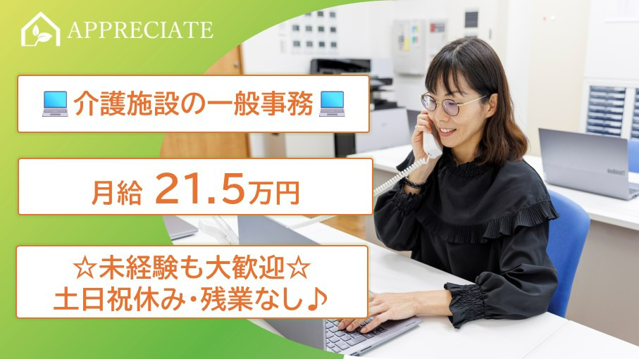 電話対応、データ入力等の事務サポートをお願いします。 介護業務は一切ございません☆ ご家庭との両立がしやすい環境です♪ 以下の老人ホーム運営業務のサポートをお願いします! ①電話対応 ②来訪対応 ③利用者様の役所手続き ④請求書発行 ⑤出納帳管理 土日祝休みで残業も無し☆ ご家庭との両立がしやすい環境です♪ <1日の流れ> 9:00 老人ホームに出勤 その日のスケジュール確認。 10:00 電話対応・来訪対応 11:00 お買物のお金準備 12:00 ☆休憩☆ 13:00 請求書作成 15:00 書類郵送準備 17:00 出納帳への打ち込み 18:00 退勤 お疲れ様でした☆