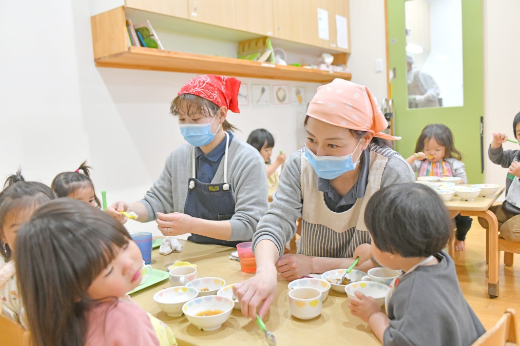 給食はどんなに栄養士が栄養配分を考えて作っても食べてもらえなければ意味がありません。野菜の切り方や味付けなど、子どもたちの食べている様子を見ながら成長を見守りながらお仕事に取り組んでもらっています。ありがたいことに子どもたちが大好きな方が多く、皆さん積極的に子どもとかかわってくれています。募集内容