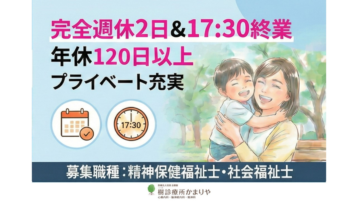 ◤精神保健福祉士・社会福祉士 募集中!◢ 【17:30終業×完全週休2日制】ライフワークバランスと専門性を両立しませんか? 経験者・新卒大歓迎!あなたのご経験とやる気をぜひ当院で活かしてください !