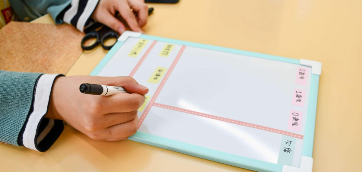 製作活動や行事の準備といった事務作業を進めます。 連絡帳も記入し、保護者への情報共有につなげます。