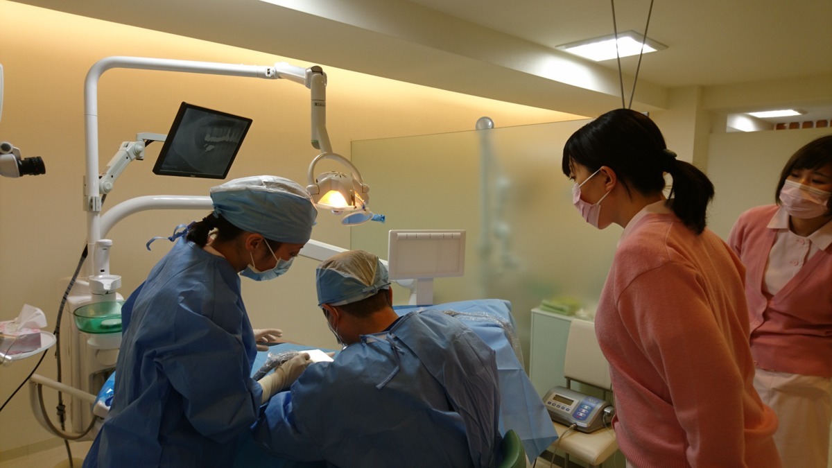 治療アシスタント業務は、患者様のお口にライトを合わせたり、器具を院長に渡したりします。