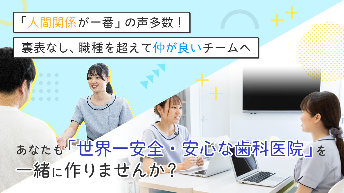 スタッフ同士が裏表なく、和気あいあいと仕事をしたい方にはぴったりの職場です。 歯科が未経験でも、少しでも興味があれば安心して挑戦できます。 みんなで支え合いながら成長できる環境なので、人間関係を大切にしながら楽しく働きたい方はぜひ一緒に頑張りましょう。