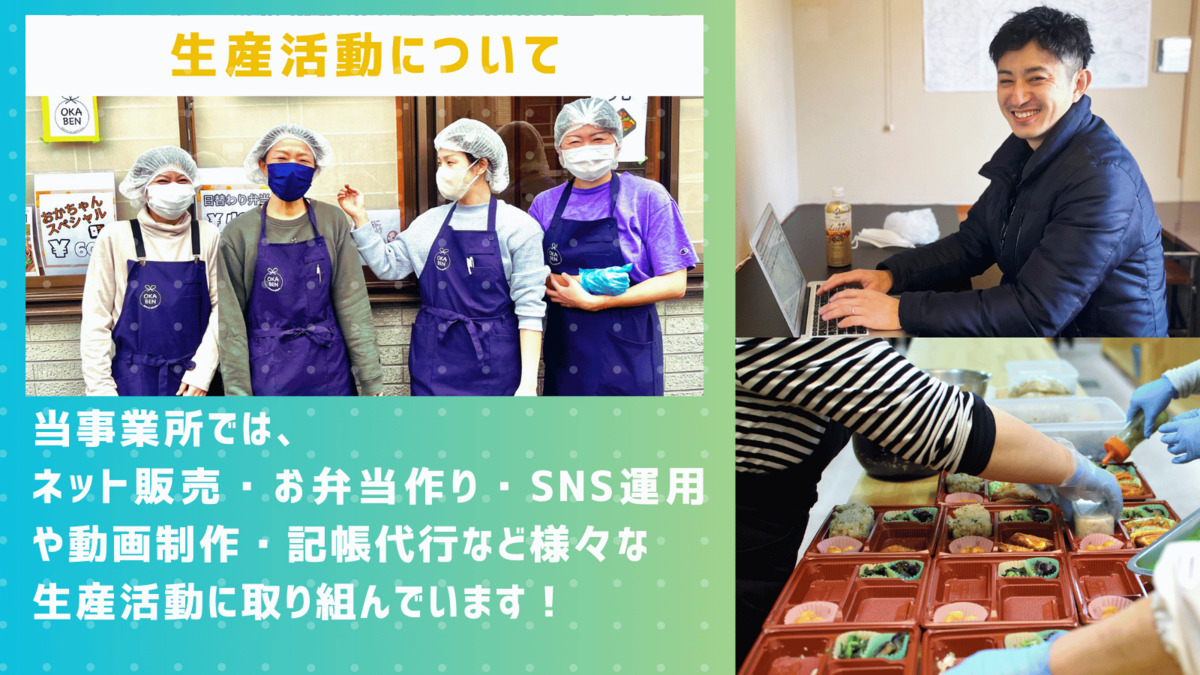 All lead 44では、利用者さんの可能性を広げるため、さまざまな仕事を用意しています。・お弁当製造