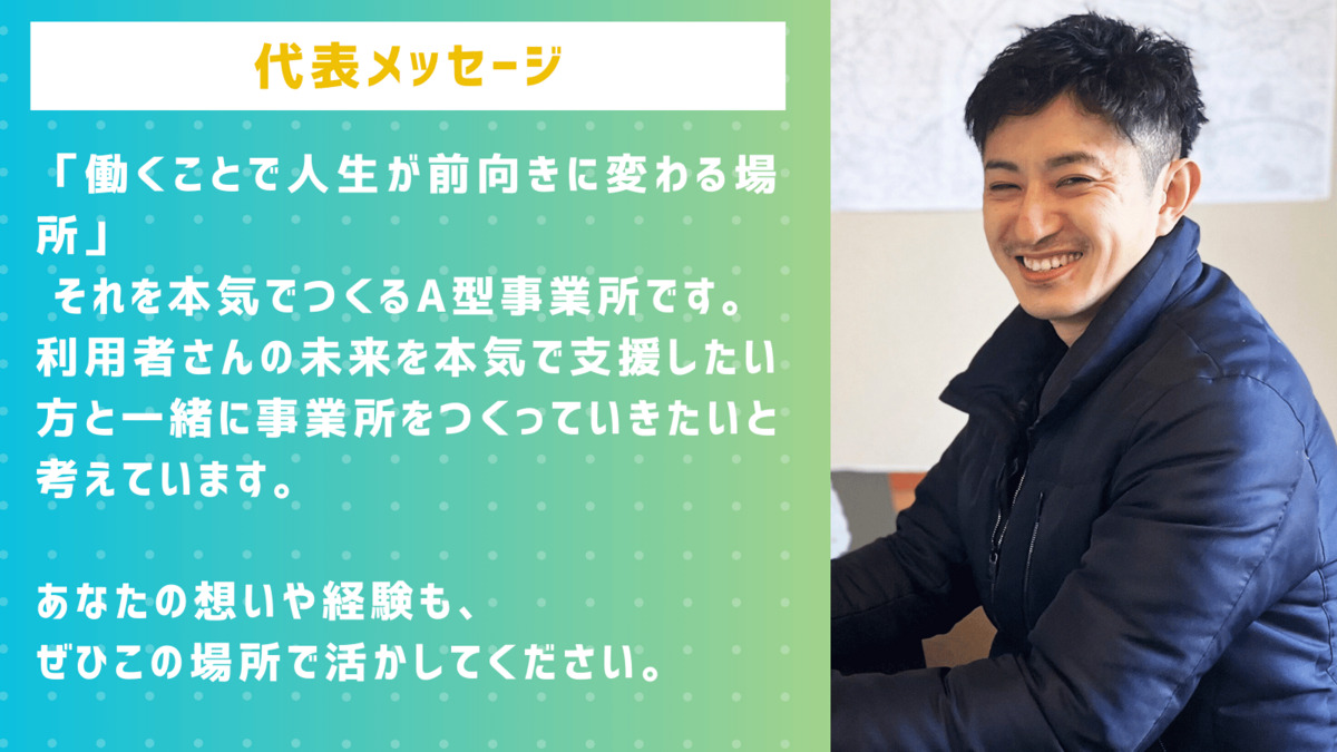 「働くことで人生が前向きに変わる場所」を本気でつくろうとしている事業所です。