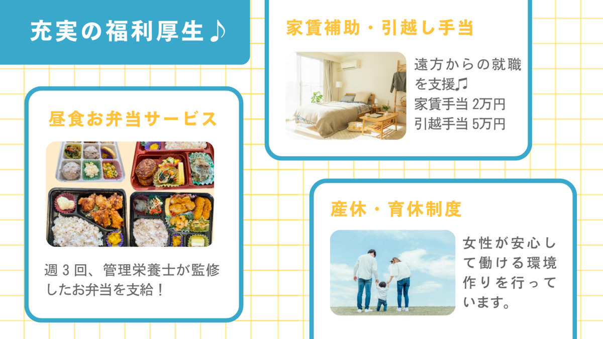 健康促進&昼食の準備時間削減の為、週3回管理栄養士が監修したお弁当を支給!スタッフからとても喜ばれています♪