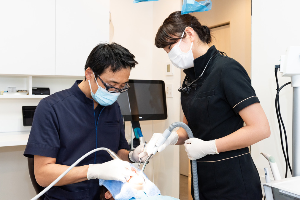 アシスタントDRの場合、簡単な診療サポートのほか、衛生士業務を中心にお任せします。丁寧な治療・フォローができるよう、院長や歯科衛生士と連携していきましょう。(歯科衛生士5名在籍)