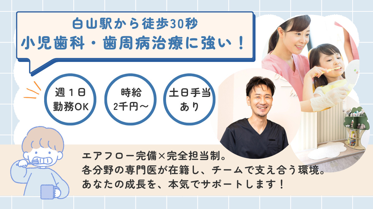 【白山駅徒歩30秒!】時給2,000円~✴︎/ブランクOK◎/小児科に強く、各専門医が揃い深く学べる環境があります!