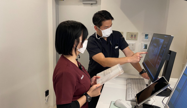 毎朝、DrとDHで共有事項などの確認をします。 ・患者情報の共有 ・検査結果の共有 ・治療計画の確認