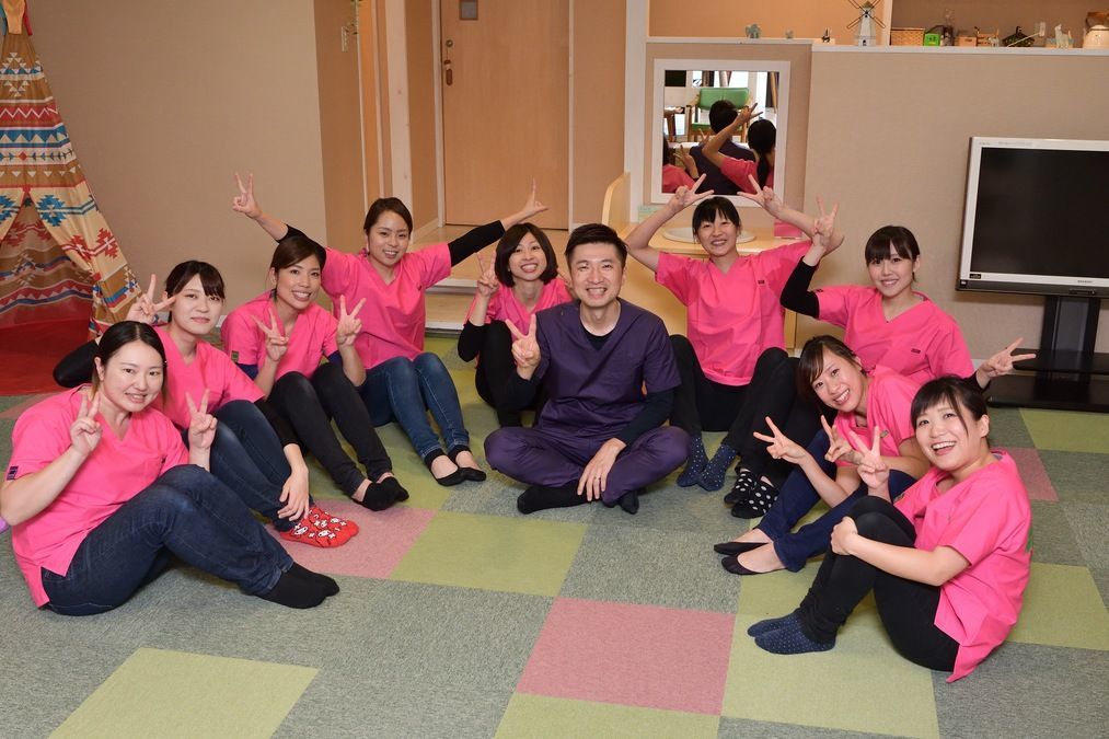 歯科医師1名 看護師1名 トリートメントコーディネーター1名(兼務2名) 歯科衛生士5名(フルタイム2名、パートタイム3名) 歯科助手3名(サプライ兼務1名) 管理栄養士1名 受付3名 保育士2名 事務1名 サプライ2名(バイト4名)