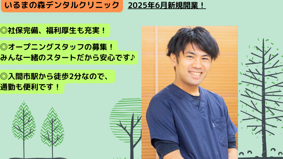 2025年6月オープン予定のいるまの森デンタルクリニックにて常勤の衛生士を募集しております。