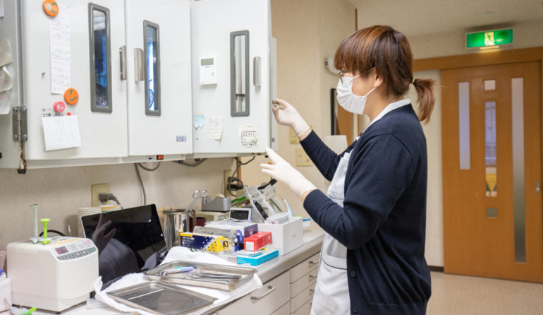 かとう歯科医院で働くスタッフの平日の流れをご紹介します♪ パート・バイトスタッフは半日勤務でもご相談可能です。 出勤したら、院内の清掃や器具の準備など患者さんをお迎えする準備をします。