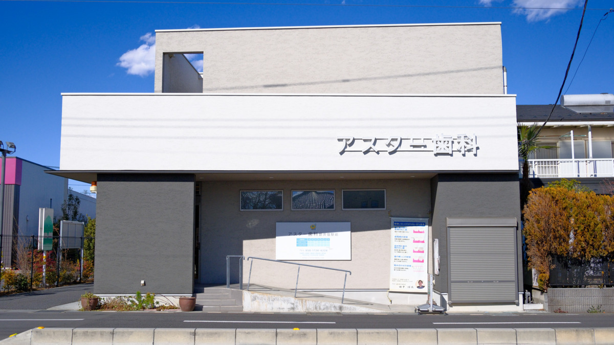 川口市新井宿に2021年春にオープンの「アスター歯科」です。受付や待合いスペースは約7メートルのガラス張りで清潔感あふれる印象の院内。全室セミ個室でプライバシーにも配慮したつくりとなっています。