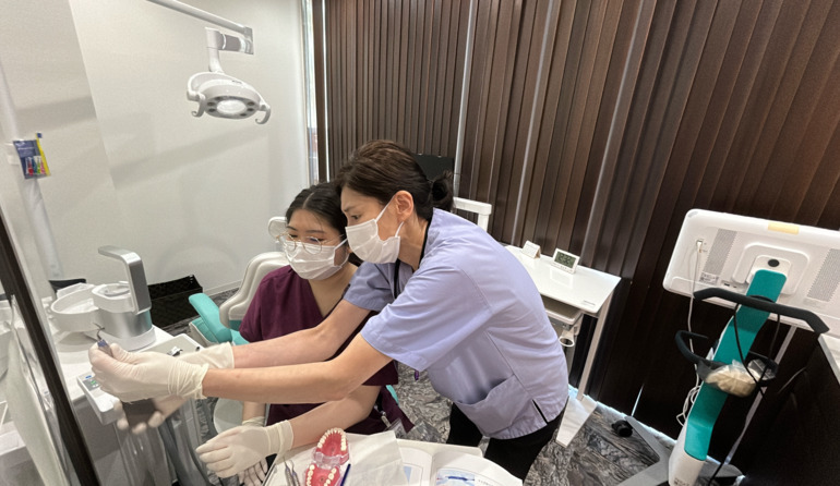 新人スタッフの教育を行います。 技術面だけではなくメンタルのフォローも大切にしています。 診療の合間にはスタッフに困ったことはないかなど、ヒアリングを行います。 DH・DAだけではなくDRから相談を持ち掛けられることも。