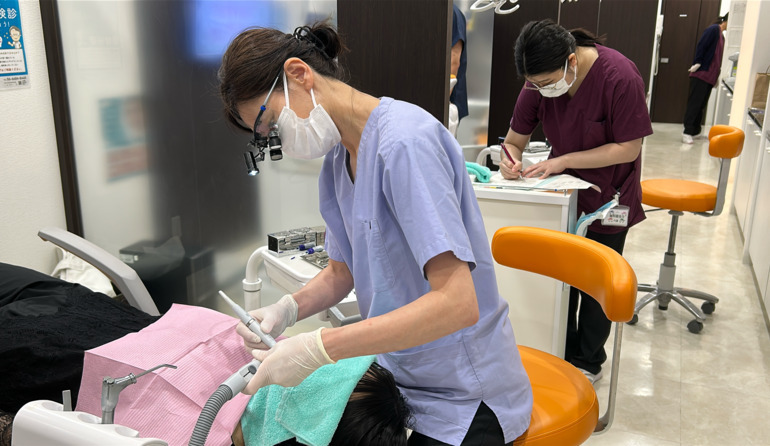 夕方に向けて忙しくなっていきます。 新人さんの指導も行いながら周囲を見渡し、必要に応じて指示をだします。 状況によってDH業務も行います。 全員が定時に帰れるようスムーズに診療を回すのも重要なお仕事です。