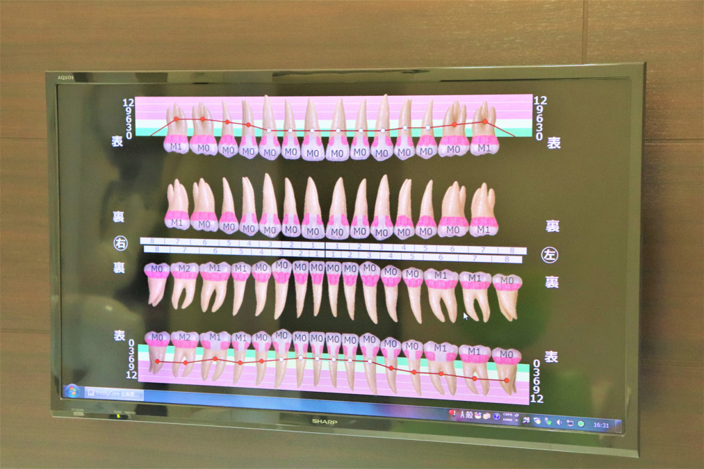 検査結果をモニターで表示するので、見やすく、説明しやすいです。