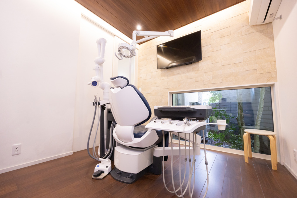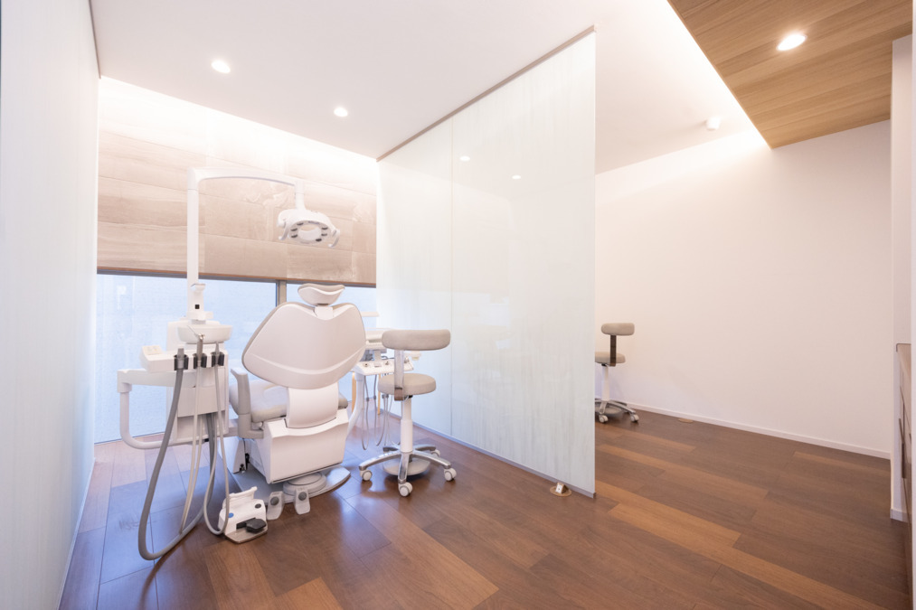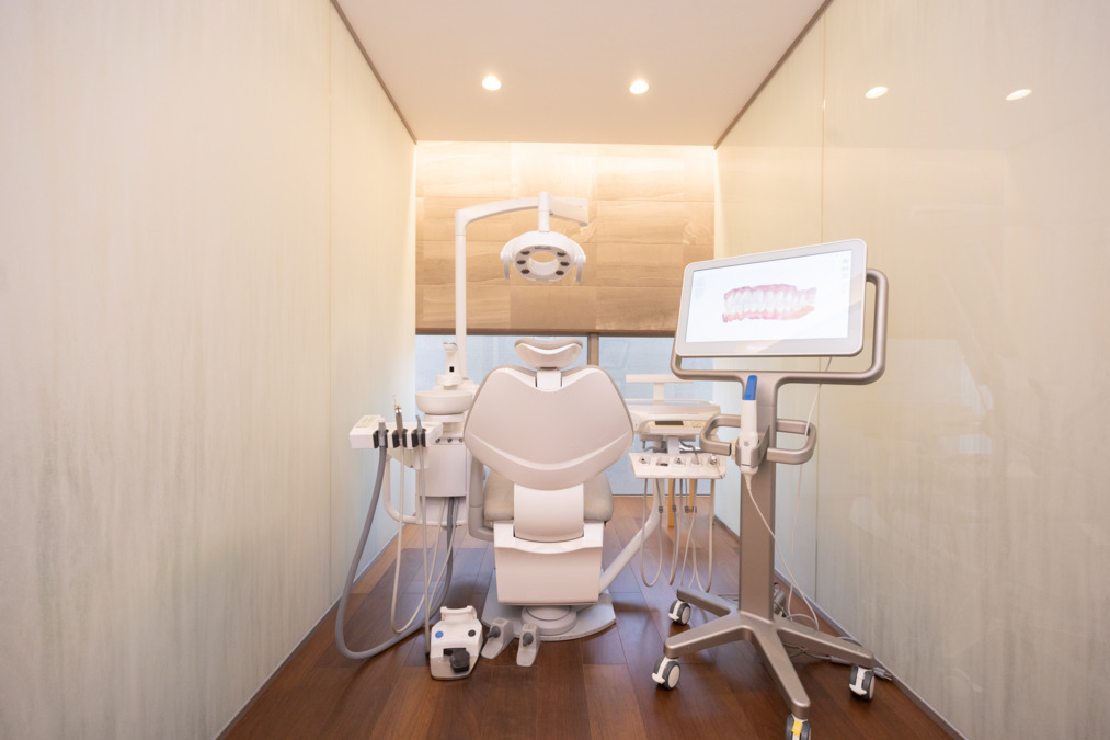 当院ではメンテナンス専用ルームを完備しており、3台のメンテナンスチェアがあります。サロンのような空間で落ち着いた衛生指導が行えますので、落ち着いた空間で指導が行えます。