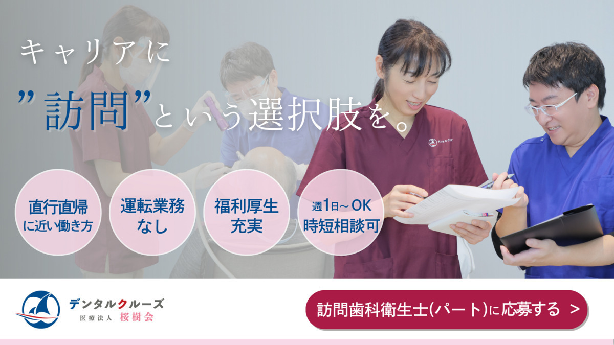 【訪問DH×運転業務なし】直行直帰│帰院後業務なし│時短勤務相談OK│週1日~OK│土日休み│社外福利厚生サービス充実│社保完備│訪問未経験者大歓迎!