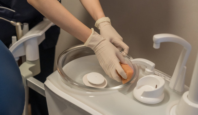 ユニットの拭き掃除や、器具の準備、ハンドピースのオイル抜きなどを行います。複数名で手分けして効率よく行っていきます✨