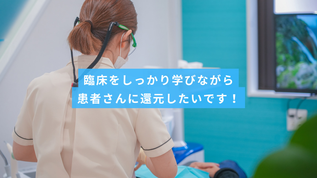前職ではなかなか積極的に学ぶことができなかったのですが、今は行きたいセミナーに行けたり歯科衛生士としてのスキルがUPできる環境だなと思います!