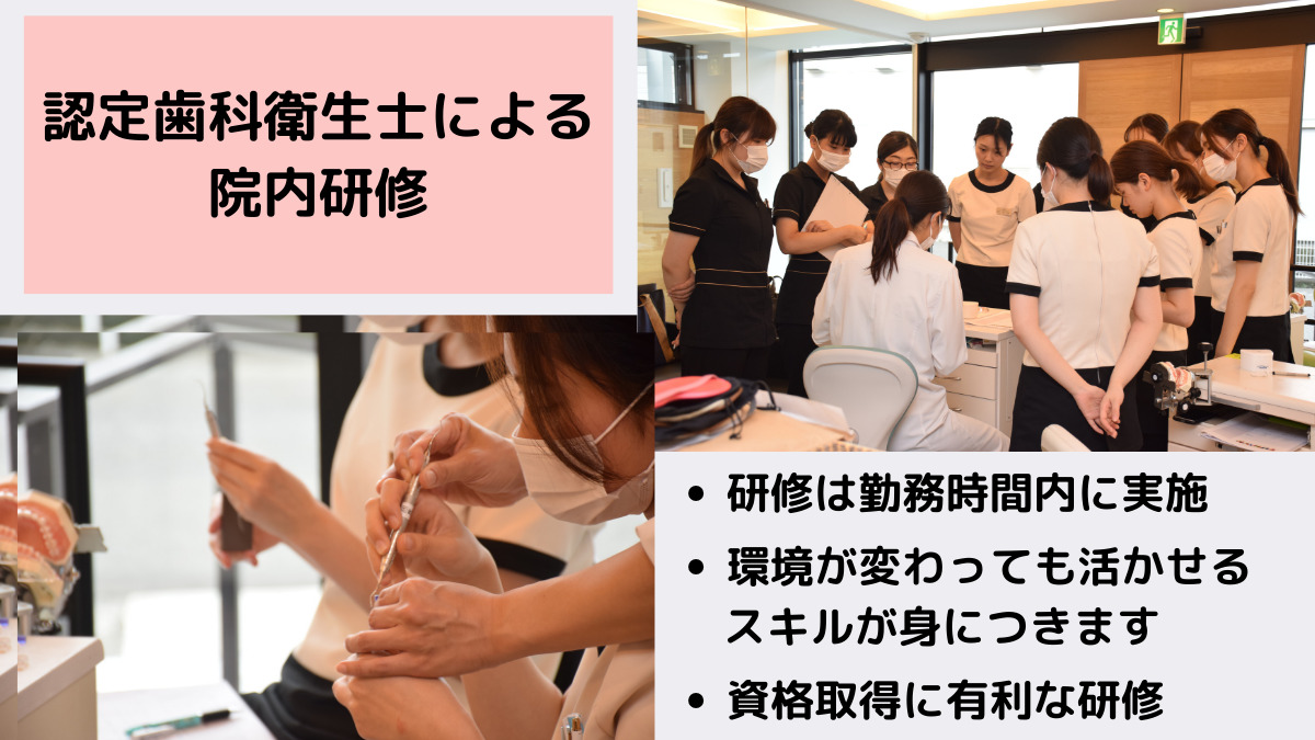 ①日本歯周病学会認定歯科衛生士による研修を毎月実施