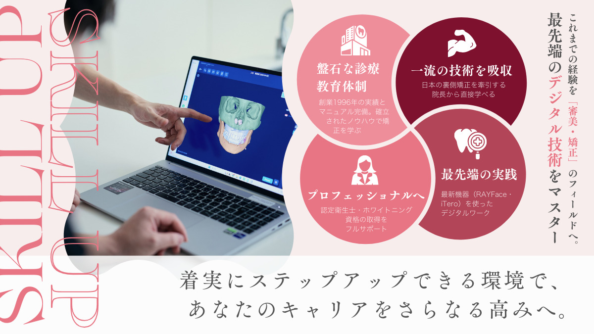「専門的な矯正スキルを体系的に学びたい」という方に最適な環境です。当院は多くのドクターに技術指導を行う「スピード矯正研究会」の拠点でもあり、教育ノウハウが確立されています。