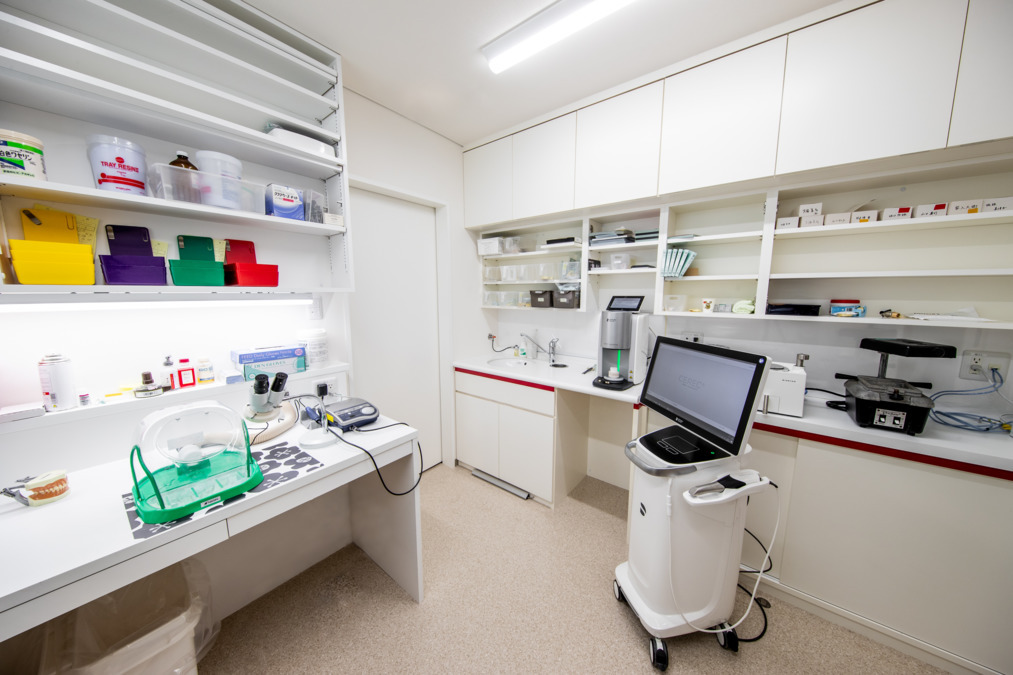 院内ではCADCAM・e-max・ジルコニアの作製、アトランティスアバットメント、インプラント上部構造、ナイトガードの作製などをしています。